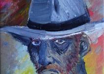 Self Portrait in Blue with Hat 2011