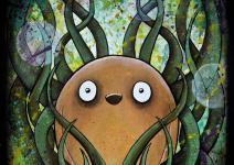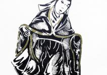 two head woman with baby and a tomcat